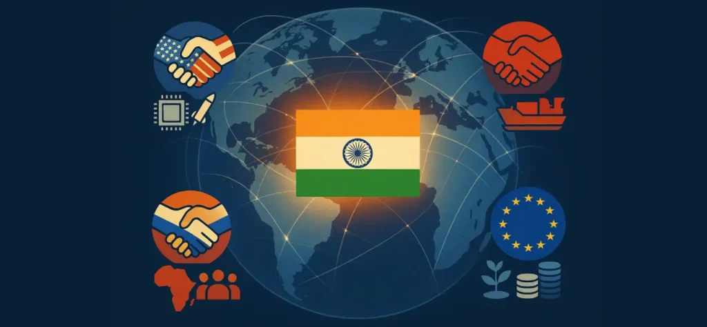 ಭಾರತವು ತನ್ನ “ತಂತ್ರಜ್ಞಾನದ ಸ್ವಾಯತ್ತತೆ” ಮತ್ತು “ಸಾಮೂಹಿಕ ಪ್ರಭಾವ” ಕ್ಕೆ ಅಂತರರಾಷ್ಟ್ರೀಯ ನಕ್ಷೆಯಲ್ಲಿ ಜೀವನೀಯ ಶಕ್ತಿ ನೀಡುತ್ತಿದೆ. ಅಮೆರಿಕಾ, ಯೂರೋಪ್, ರಷ್ಯಾ, ಮತ್ತು ಆಸ್ಟ್ರೇಲಿಯಾ ಮುಂತಾದ ಅಭ್ಯರ್ಥಿಗಳ ಸಂಗತಿಯಲ್ಲಿ ತನ್ನ ರಾಜತಾಂತ್ರಿಕ ಚತುರತನದ ಹಾದಿ ನೈಜವಾಗಿ ಮುಂದುವರೆದಿದೆ.